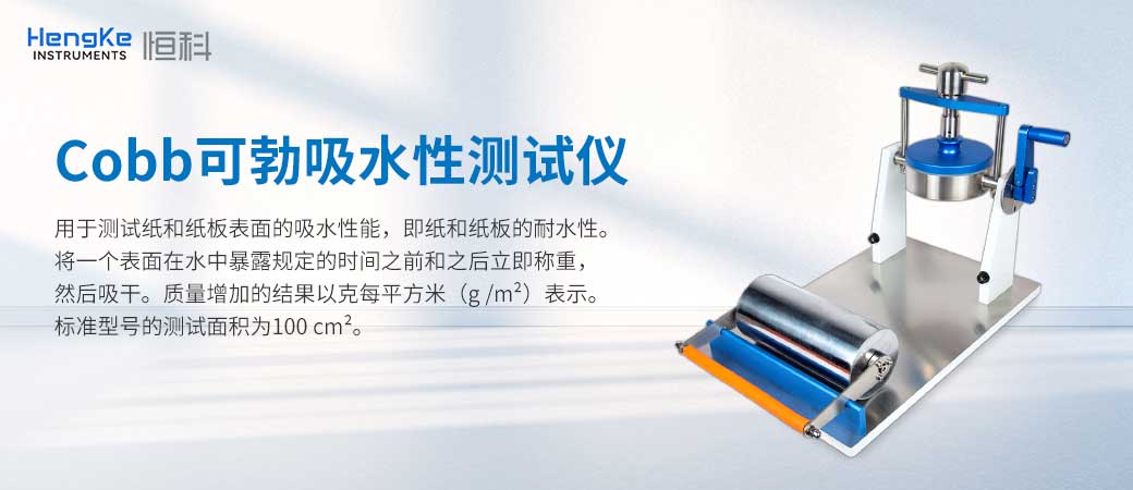 產品簡介: Cobb可勃吸水性測試儀用於(yú)測試紙(zhǐ)和紙板表麵的吸水性能, 即紙和紙板的耐水性。將一個表麵在水中暴露規(guī)定的時間(jiān)之前和(hé) 之後立即(jí)稱重,然後吸幹。質(zhì)量增加的結果以克每平方米(g /m²) 表示。標(biāo)準型號的測試麵積為100 cm²。