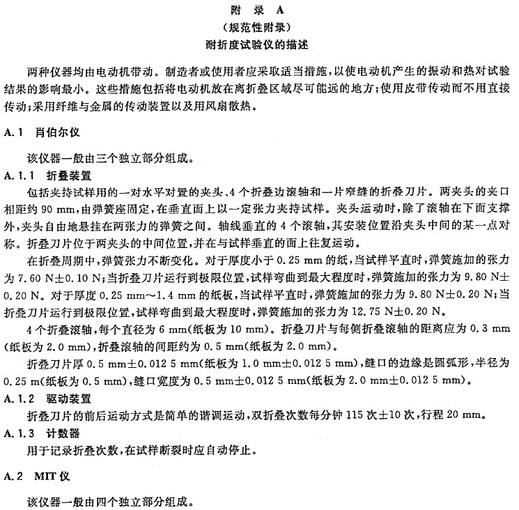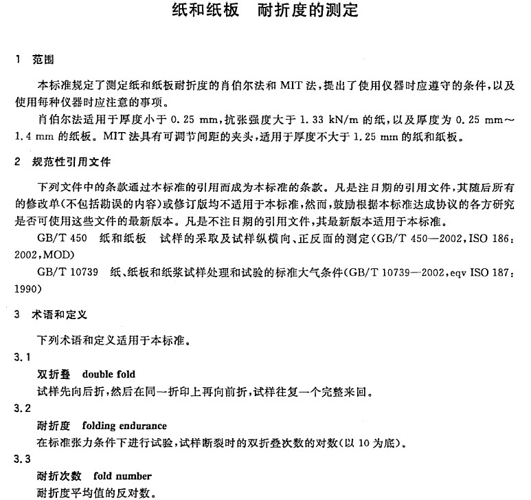 紙張檢測儀器/紙和紙板 耐折度的測定(免費下載)