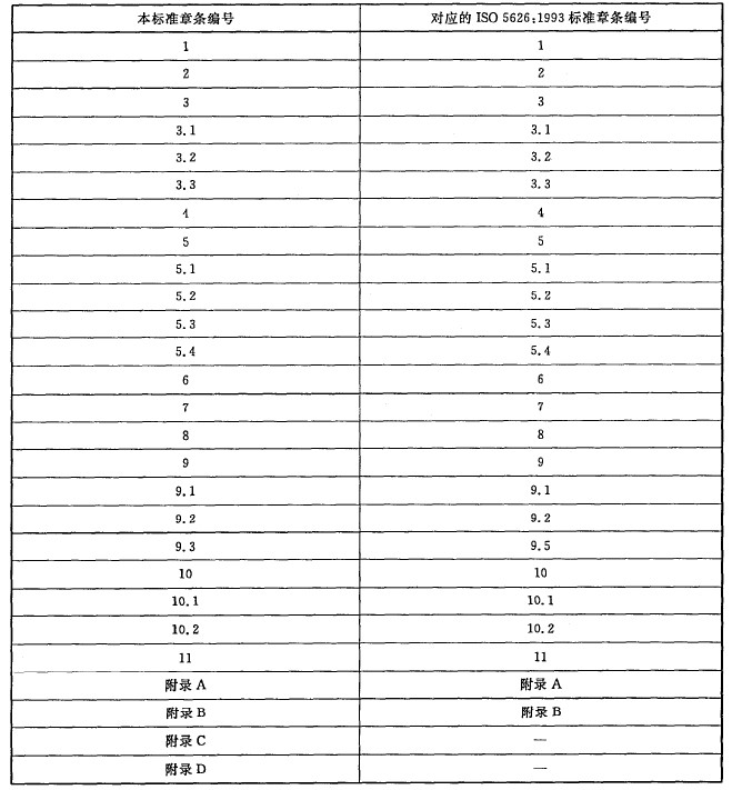 —增加了本標準與對應的ISO5626:1993章節編(biān)號對(duì)照表(參見附錄C);