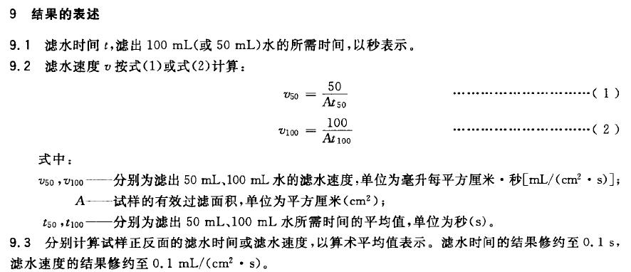 8.3.3 記下濾出100mL(或50mL)水所需的時間,精確至0.1s。正反麵各測定5張試樣。