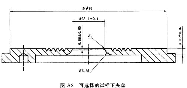 上(shàng)夾盤的圓孔上(shàng)麵應有足夠大的空間,以使試樣能夠自由凸出。如果將其設計成封閉形,應有一個足夠(gòu)大的小(xiǎo)孔與大氣相通,以使(shǐ)聚集在試樣(yàng)上部的空氣逸出,小孔直徑約為4mm。