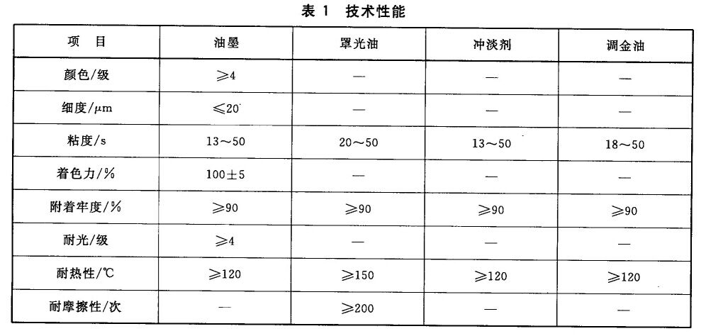 本類(lèi)產品應用於卷煙條與盒印刷時各項技(jì)術性能應符合表1、表2、表3規定,本類產品應用於卷煙 條與盒印刷之(zhī)外的其他應用時應符合表1中的顏色、細度、粘度、著色(sè)力、附著牢度及表3的規定。