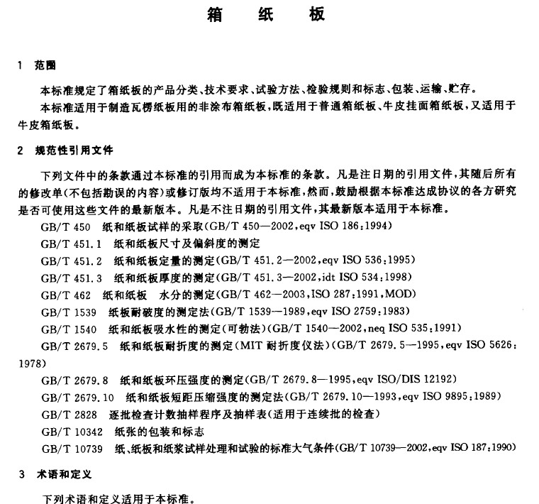 本標準與日本(běn)工業標準(zhǔn)JIS P3902:2000《箱紙板》的一致性(xìng)程度為非(fēi)等效(xiào)