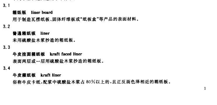 ——標準中補充(chōng)了對普(pǔ)通箱(xiāng)紙板、牛皮掛麵箱紙板、牛皮箱紙板的定義;