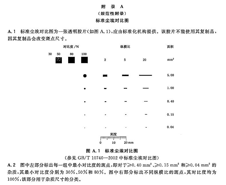 注:標準(zhǔn)塵埃對比圖應由(yóu)標準化(huà)機構提供,不應(yīng)使用複製品,因複製品可能(néng)會(huì)改變斑(bān)點的尺(chǐ)寸。