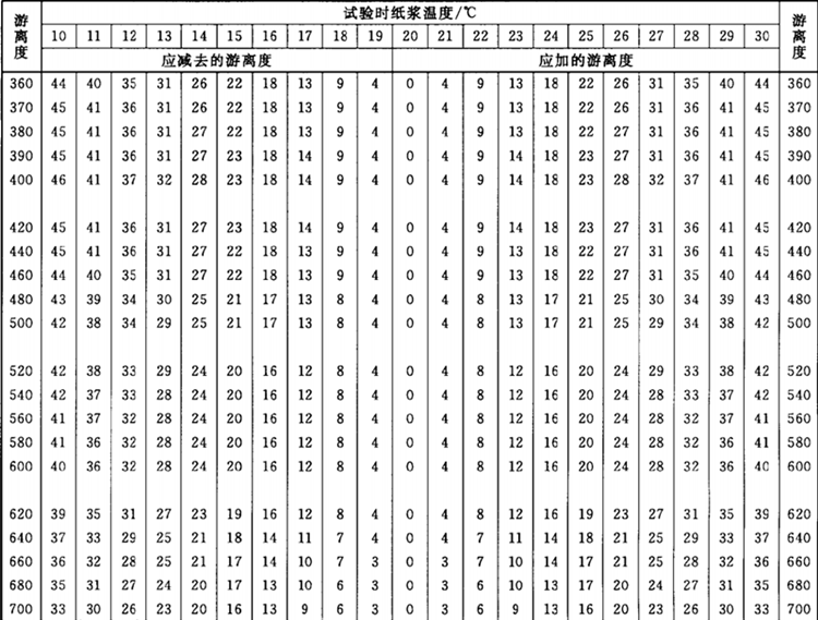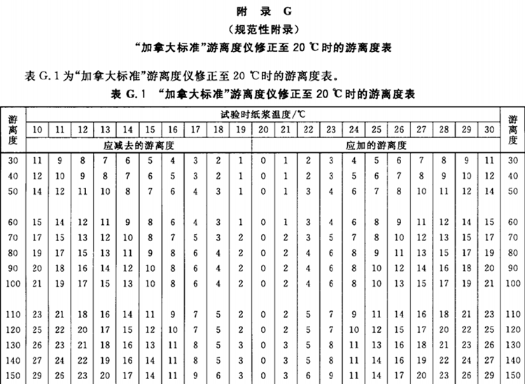 注3:如果有必要,例(lì)如過程控製中,可能會采用不同於20℃的其他溫度(dù),並且(qiě)該溫度也(yě)不符合本(běn)標準的規定,這種情況應(yīng)在試驗報告中說明。本標準的(de)校正表(附錄F和附錄G)是基於磨木漿的遊離度研究得出的。對於化(huà)學漿遊離度評價的校正表的精確度還不確定。
