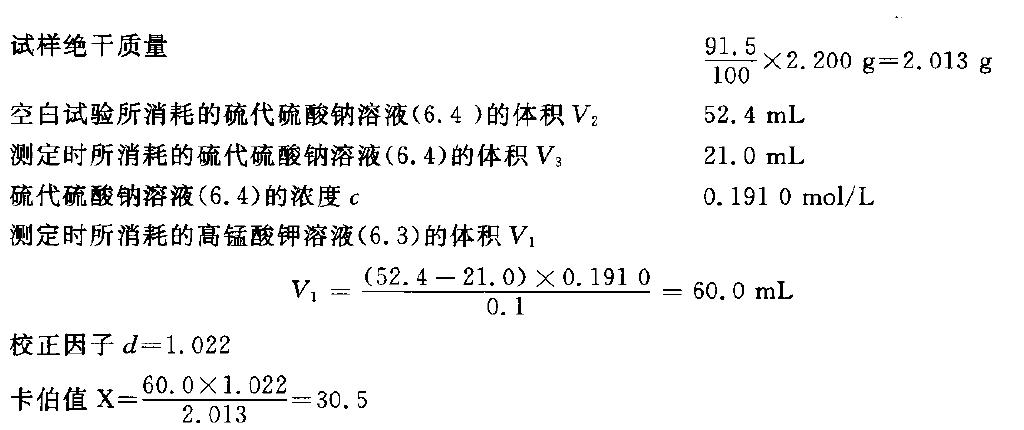 V1— 測定時所消耗的高錳酸鉀溶液(6.3)的體積,單位為毫升(mL) ;