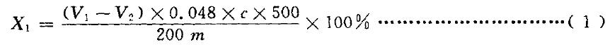 V— 硫代硫酸鈉(nà)(Na2S2O3 ·5H2O)溶液(yè)的用量,單位為毫升(shēng)(L);