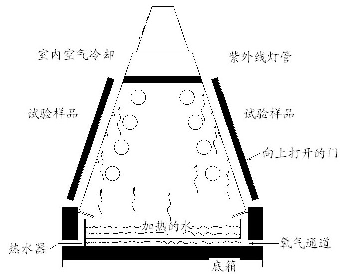 4.试验样品固定安装在相距灯表面的最近平行面50㎜的位置,试验样品和它的支架构成箱的内壁,它们的背面曝露于室温的冷(lěng)却空气中,由于(yú)试验样品(pǐn)和箱内空气的温差。使试验样品表面的冷凝阶段产生稳(wěn)定的凝露条件,试验箱应(yīng)由底部经箱外壁和试验样品的通道产生自然空气对流。